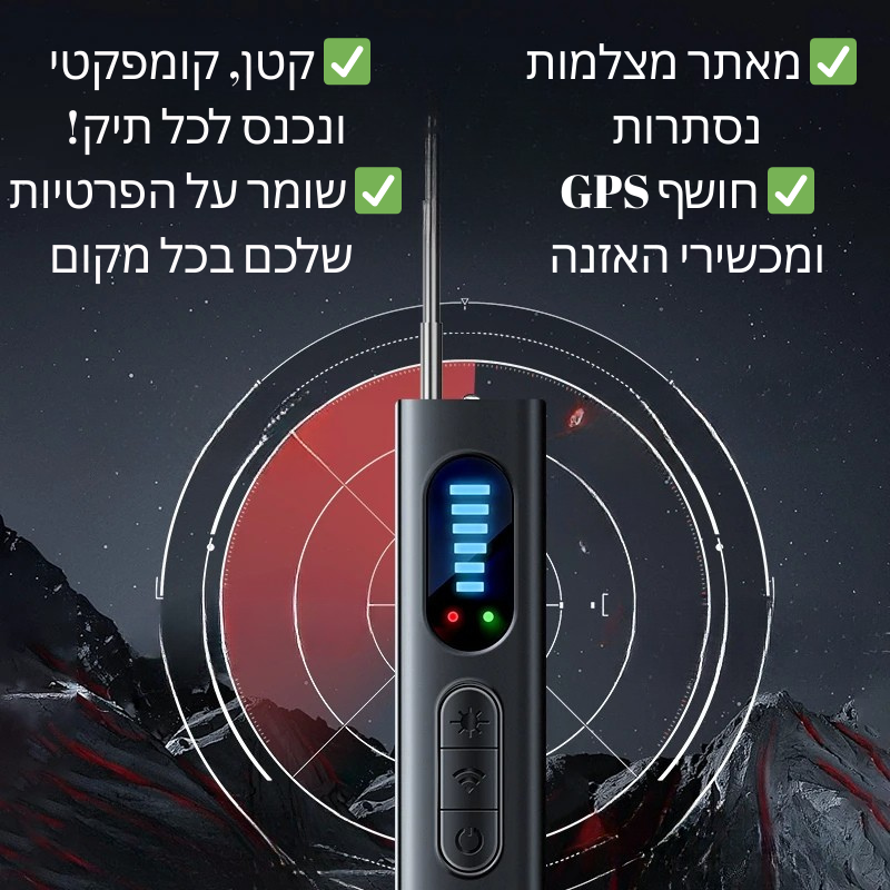 ✅ מאתר מצלמות נסתרות ✅ חושף GPS ומכשירי האזנה ✅ מתאים לבית, רכב ומלון סריקה מהירה – שקט נפשי מיידי