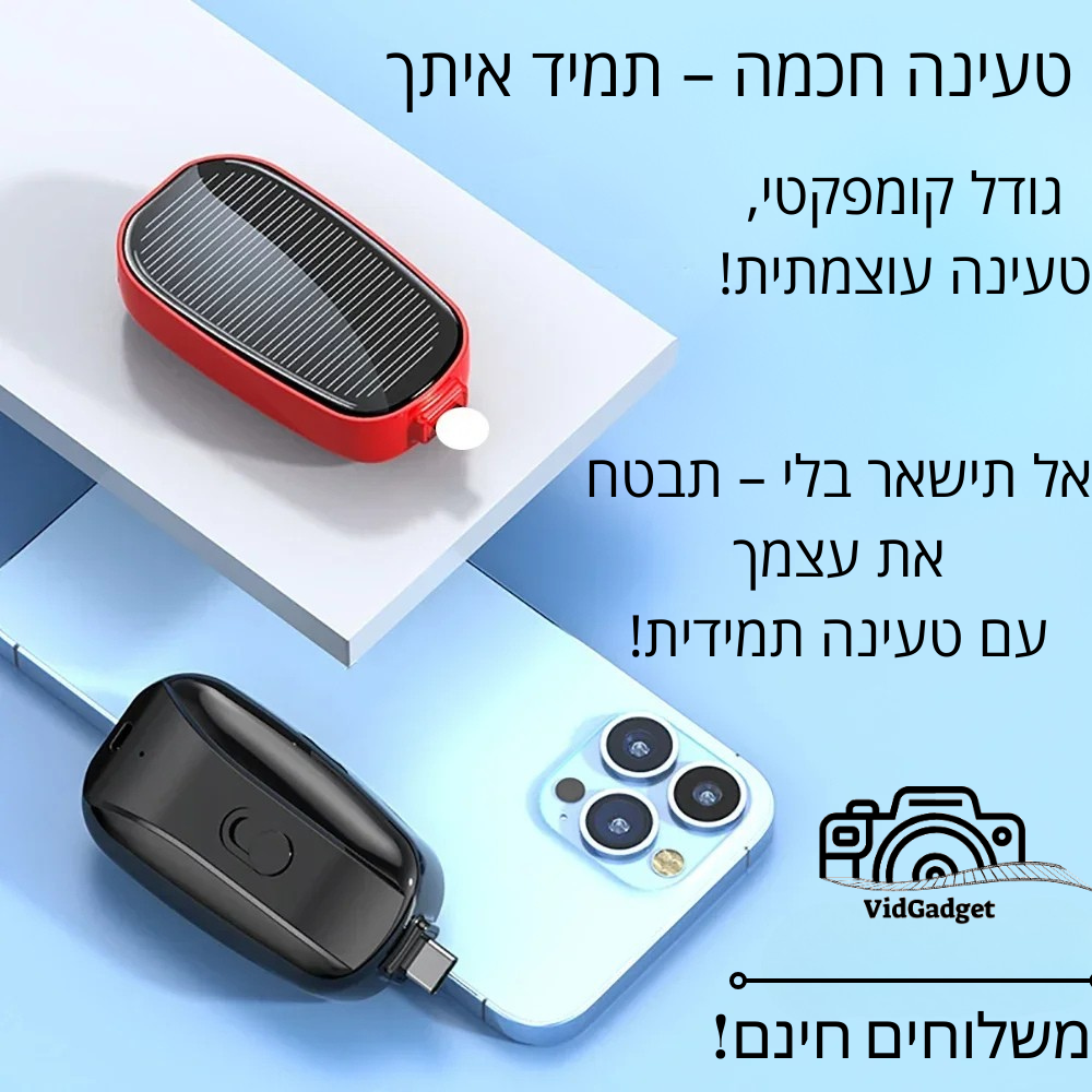 הכירו את המיני מטען נייד - מטען מיני סולארי שתמיד איתך.