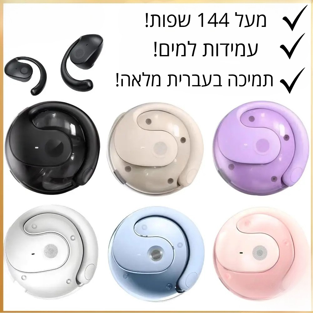 האוזנייה מתרגמת בלייב – ברגע שמדברים, אתה שומע תרגום אוטומטי ישירות לאוזן. אפשר גם לדבר חזרה – והיא תתרגם את דבריך לצד השני.